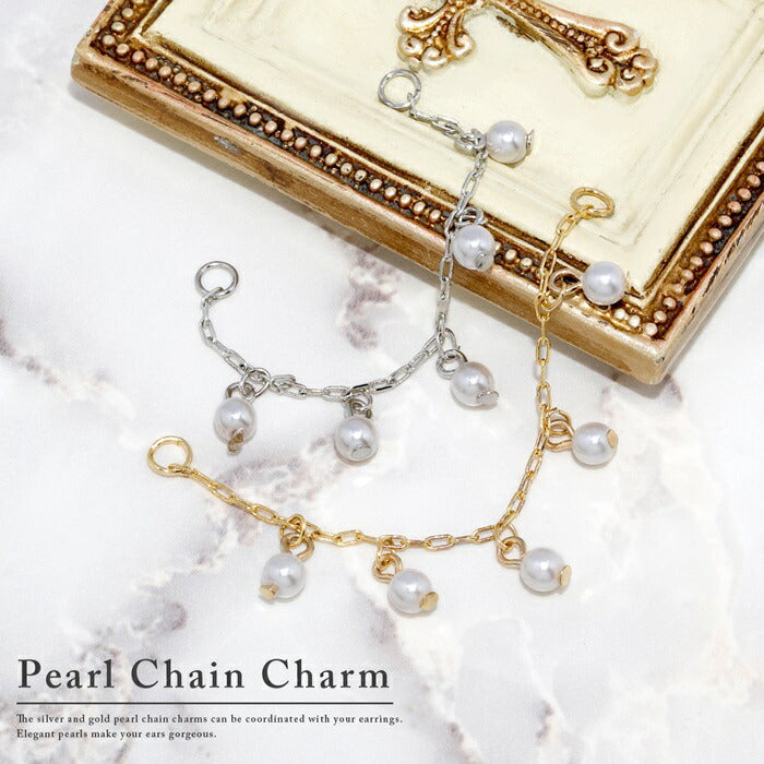 【全品送料無料】 チャーム ピアスパーツ ボディピアス パーツ 軟骨ピアス チェーン パール 可愛い パーツ アレンジ 真鍮 合金 カスタムピアス カスタム パーツカスタマイズ シルバー ゴールド 片耳用 耳たぶ用 軟骨用