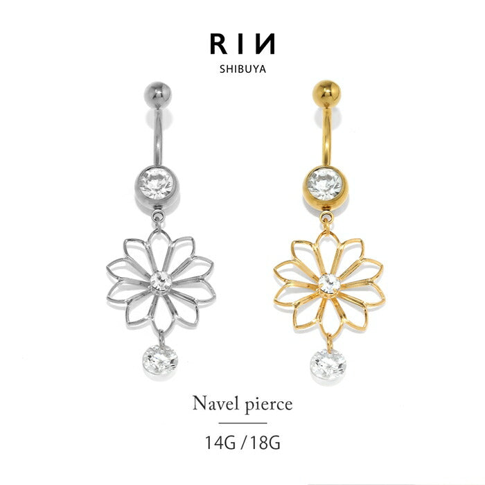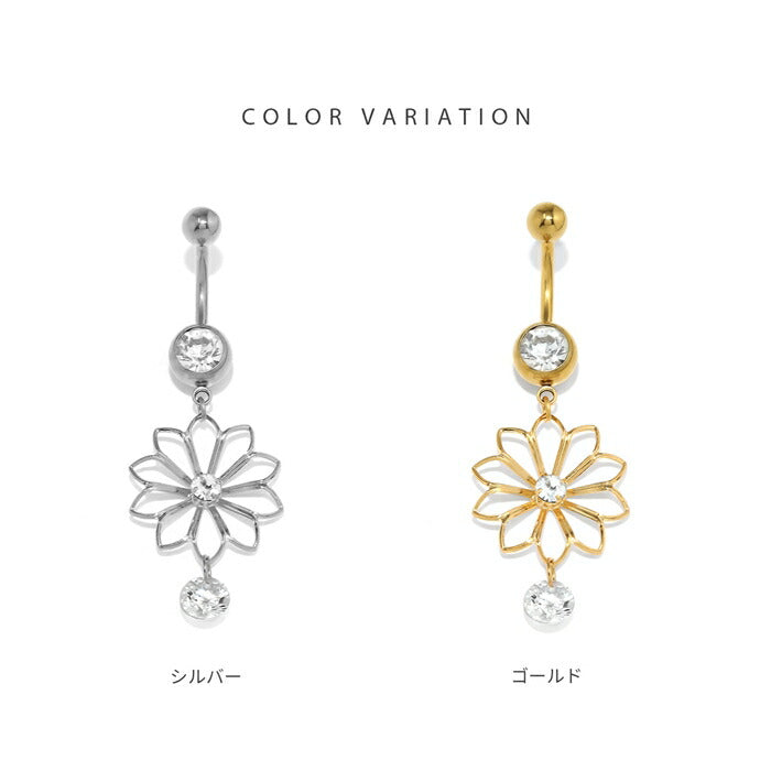 へそピアス 14G 18G 花 フラワー ジュエル 金属アレルギー対応 バナナバーベル へそピアス0570 t8952-001