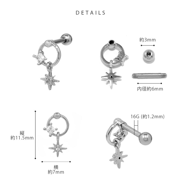 t9192-002 16G スプラッシュスター ジュエル 星チャーム ストレートバーベル 片耳用