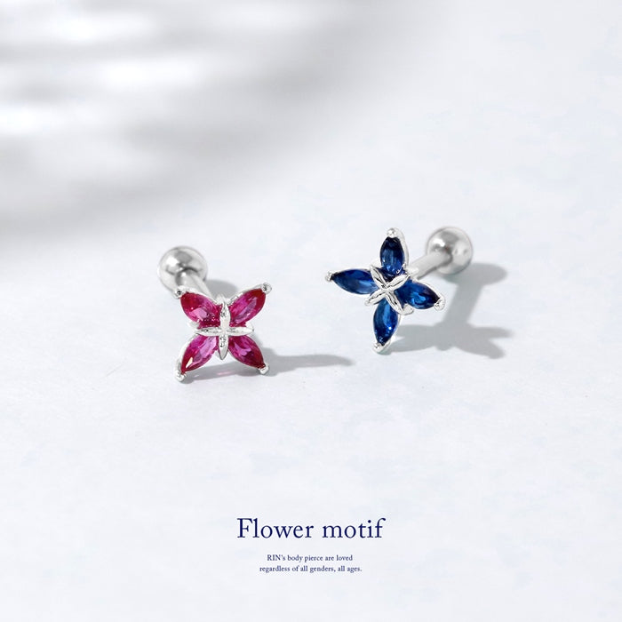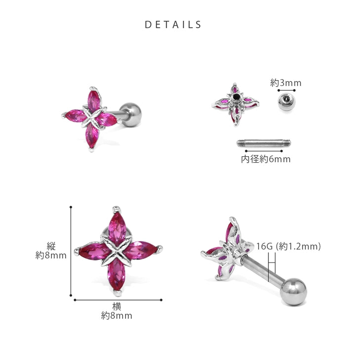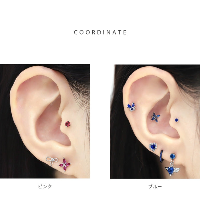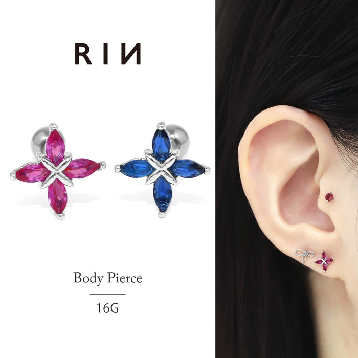 t9192-012 軟骨ピアス 16G ボディピアス ブルー ピンク ジュエル フラワー クロス キュービックジルコニア ストレートバーベル ピアス サージカルステンレス 片耳用