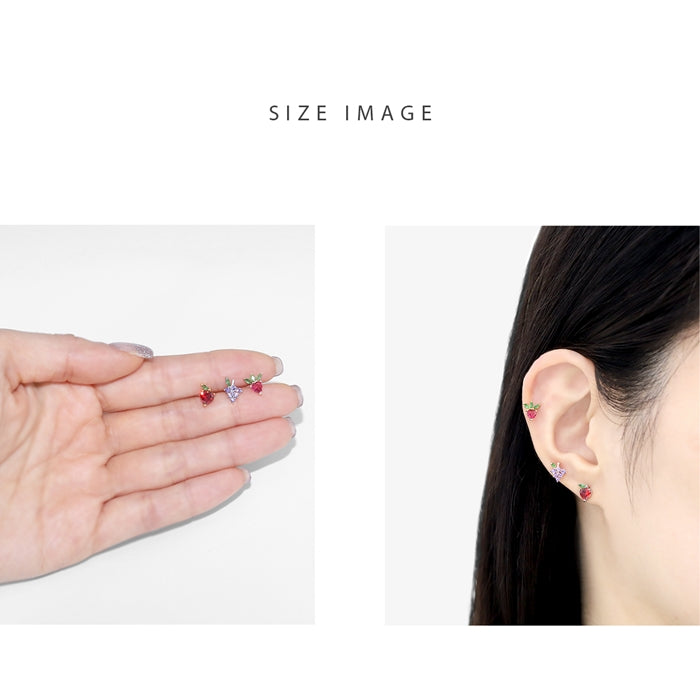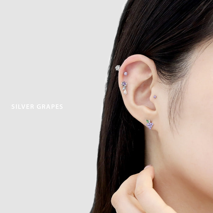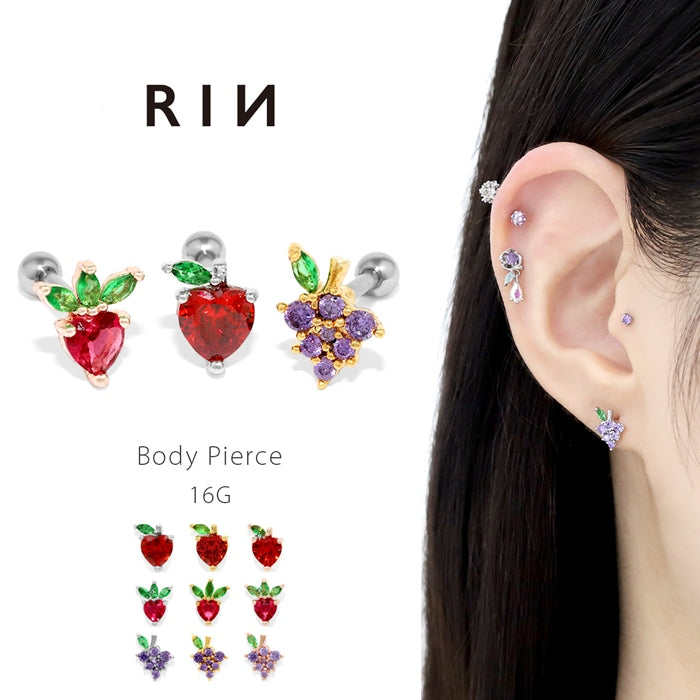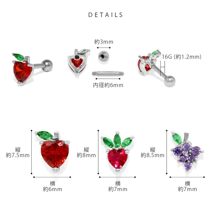 t9192-021【全品送料無料】 軟骨ピアス 16G ボディピアス かわいい キャッチ チャーム サージカルステンレス 金属アレルギー対応 フルーツ ジュエル 果物 フレッシュ りんご いちご ぶどう キュート 植物 おしゃれ キラキラ セカンドピアス メンズ 軟骨 ピアス ボディーピアス