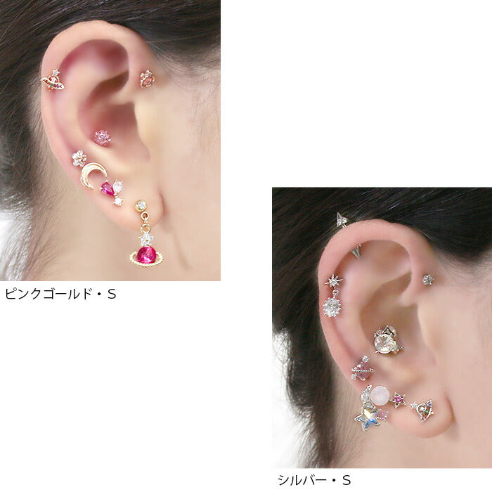 【全品送料無料】 ボディピアス 16G 軟骨ピアス ピアス 宇宙 UFO シルバー ゴールド ピンクゴールド キュービックジルコニア ストレートバーベル サージカルステンレス セカンドピアス ピアス 人気上昇中