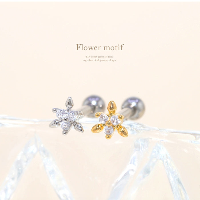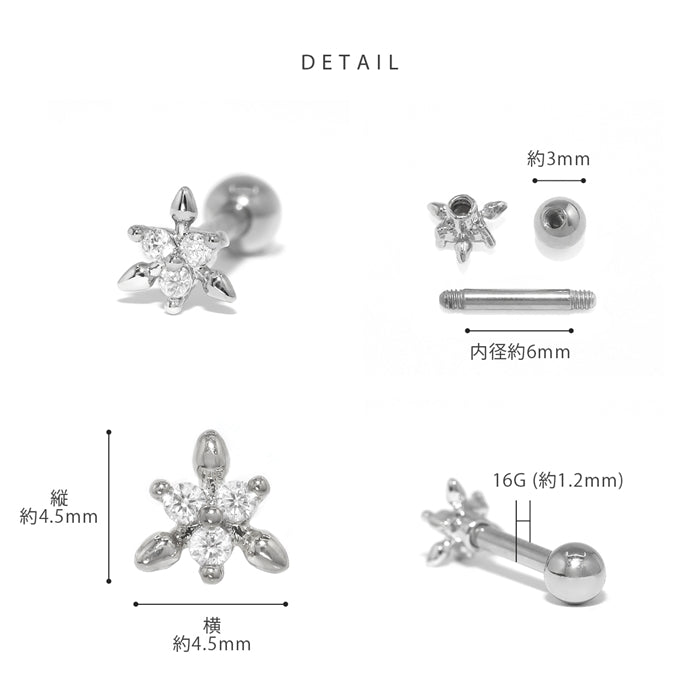 16G 軟骨ピアス 六花 トリニティ ジュエル CZ ストレートバーベル 片耳用 軟骨1206 t9192-048