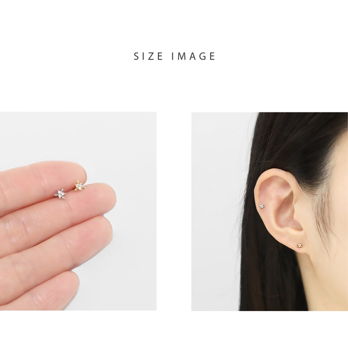 t9192-048 軟骨ピアス 16G ボディピアス かわいい サージカルステンレス 金属アレルギー対応 ジュエル キラキラ おしゃれ 六花 六芒星 雪華 結晶 キュービックジルコニア トリニティ ストレートバーベル ファーストピアス セカンドピアス キャッチ 片耳用