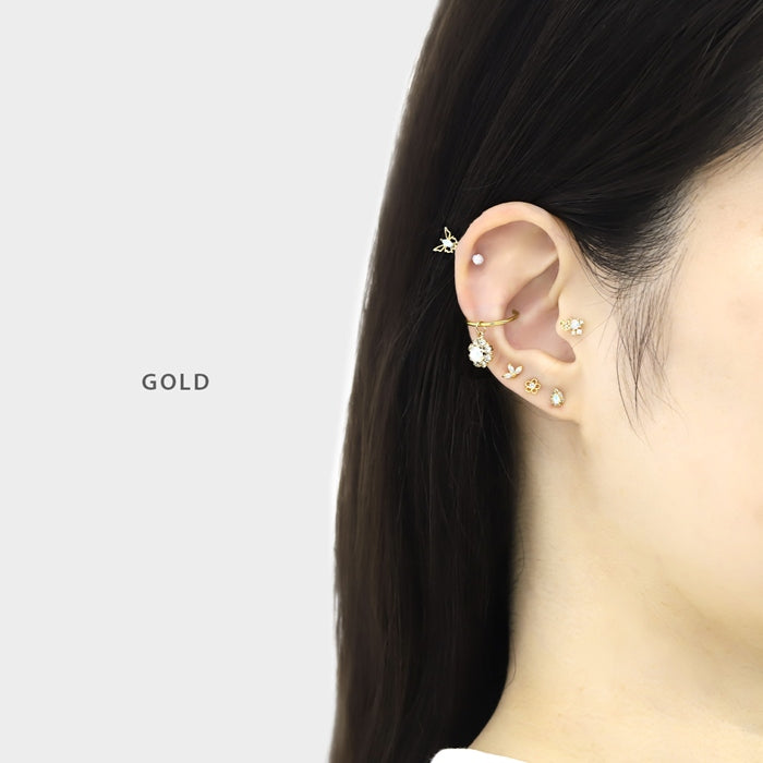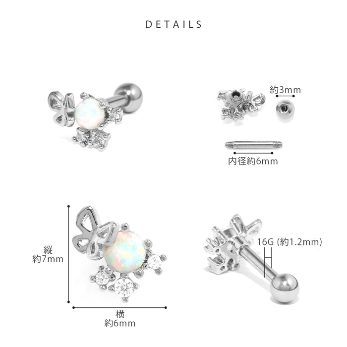 t9192-054 軟骨ピアス 16G ボディピアス かわいい キャッチ チャーム サージカルステンレス 金属アレルギー対応 蝶 蝶々 バタフライ ジュエル オーロラ おしゃれ キラキラ ストレートバーベル 片耳用