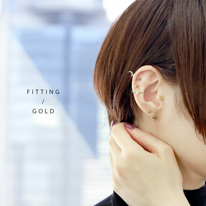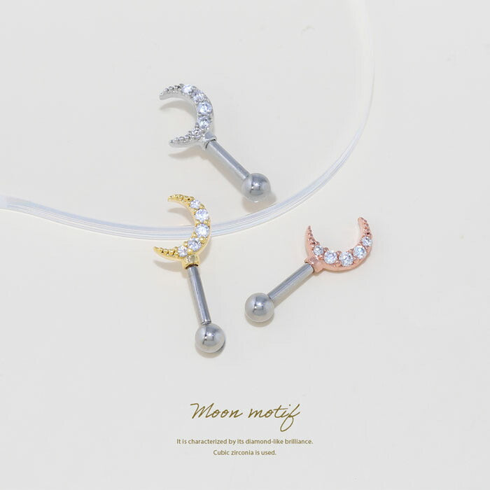 t9192-106 ボディピアス 軟骨ピアス 16G ピアス 金属アレルギー サージカルステンレス 月 ムーン つけっぱなし アンテナ アンテナヘリックス ストレートバーベル レディース シルバー ゴールド ピンクゴールド シンプル アクリル キラキラ ヘリックス 片耳用