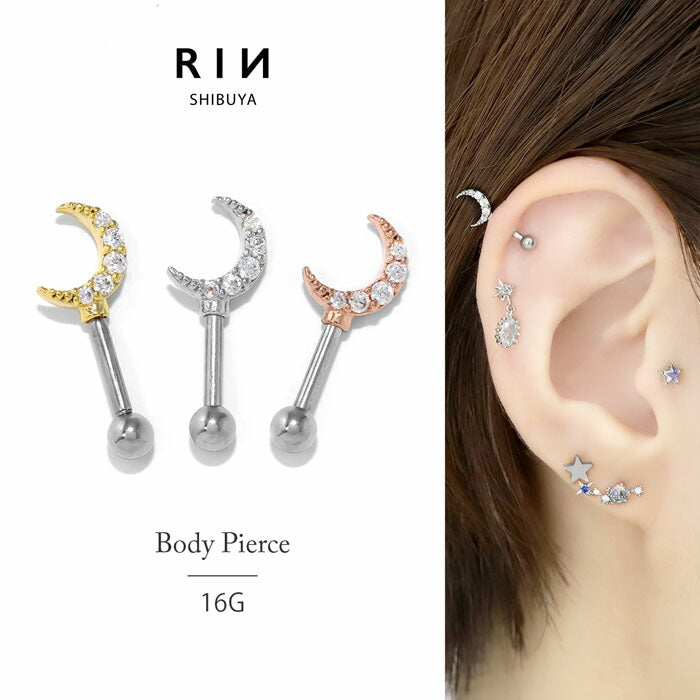 16G ボディピアス 軟骨ピアス アンテナヘリックス 月 ムーン 三日月 ジュエル ストレートバーベル 軟骨1413 t9192-106