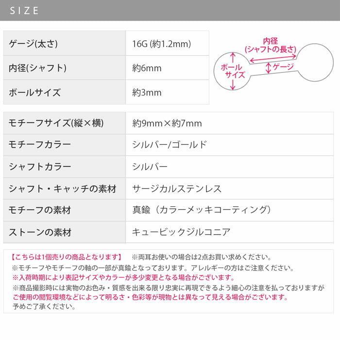 ※こちらの商品の一部カラーは、カラーのメッキコーティングを施しています。体質によって着けたままにされますと、メッキコーティングが剥がれる可能性がございます。