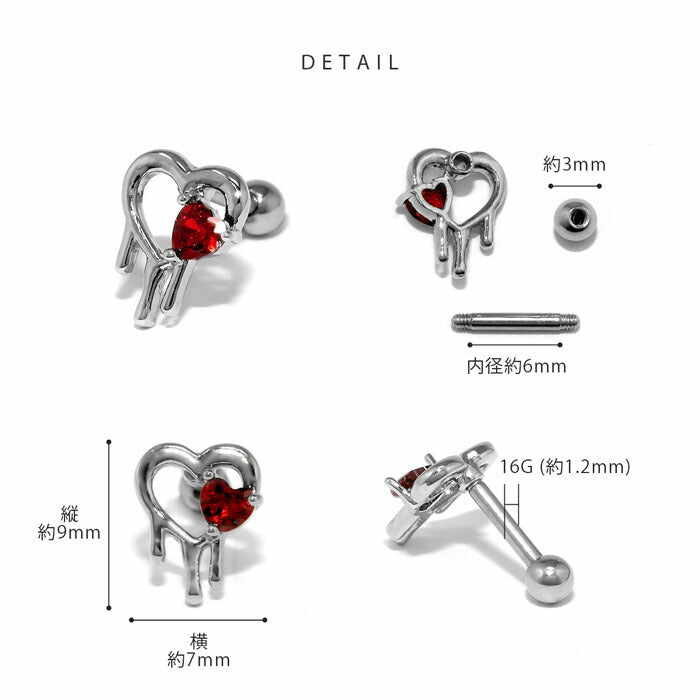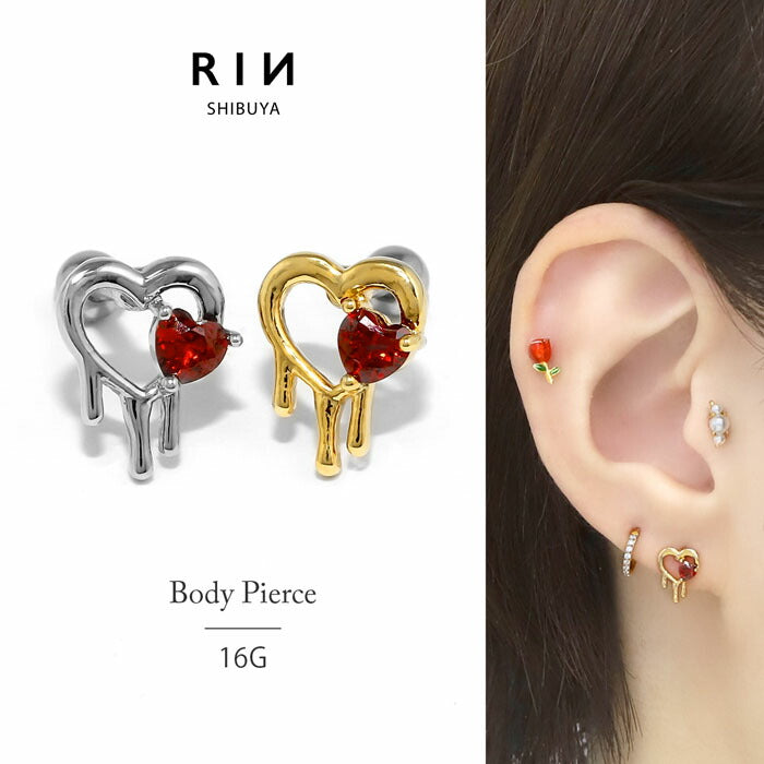 16G メルトハート 溶けハート ストレートバーベル ボディピアス 軟骨1422 t9192-108