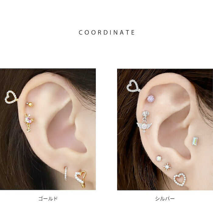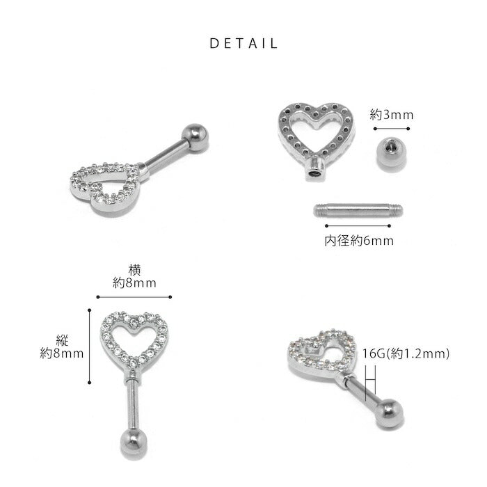 16G ボディピアス ハート アンテナヘリックス ストレートバーベル ジュエル 可愛い 軟骨1425 t9192-109