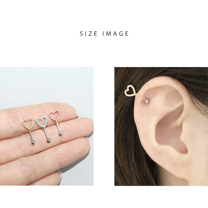 t9192-109 軟骨ピアス 16G ボディピアス サージカルステンレス つけっぱなし 金属アレルギー 金属アレルギー対応 ハート ストレートバーベル シルバー ゴールド ピンクゴールド トアンテナヘリックスピアス ピアス キラキラ ジルコニア 片耳用