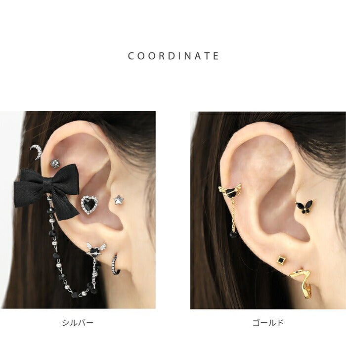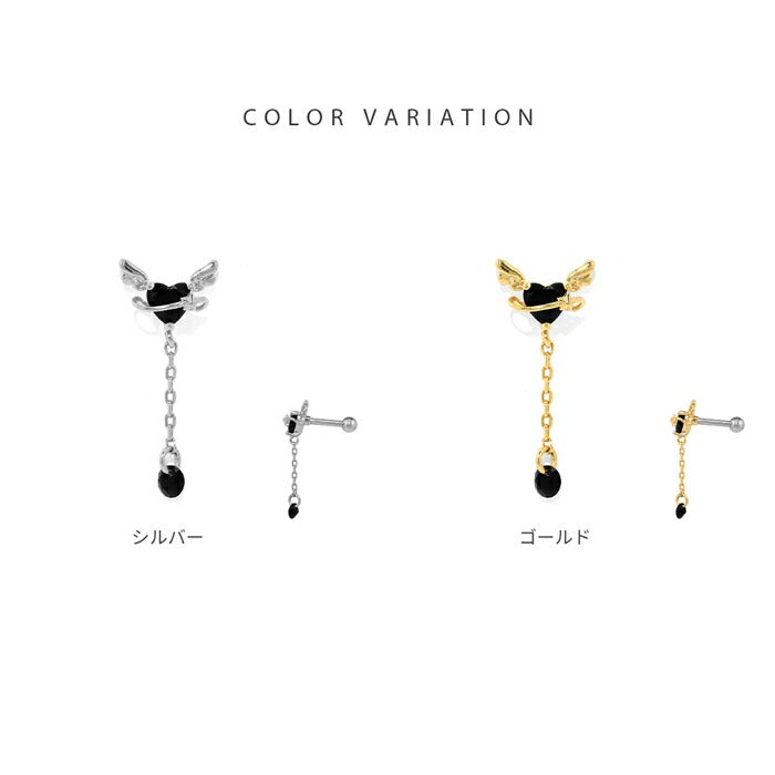 t9192-113 ボディピアス 軟骨ピアス 16G ブラックハート サージカルステンレス 金属アレルギー対応 キュービックジルコニア ゆらゆら揺れる ストレートバーベル 羽 翼 惑星 ゴシック シルバー ゴールド ヘリックス デイリー 日常使い 女子会 お出かけ ギフト 片耳用