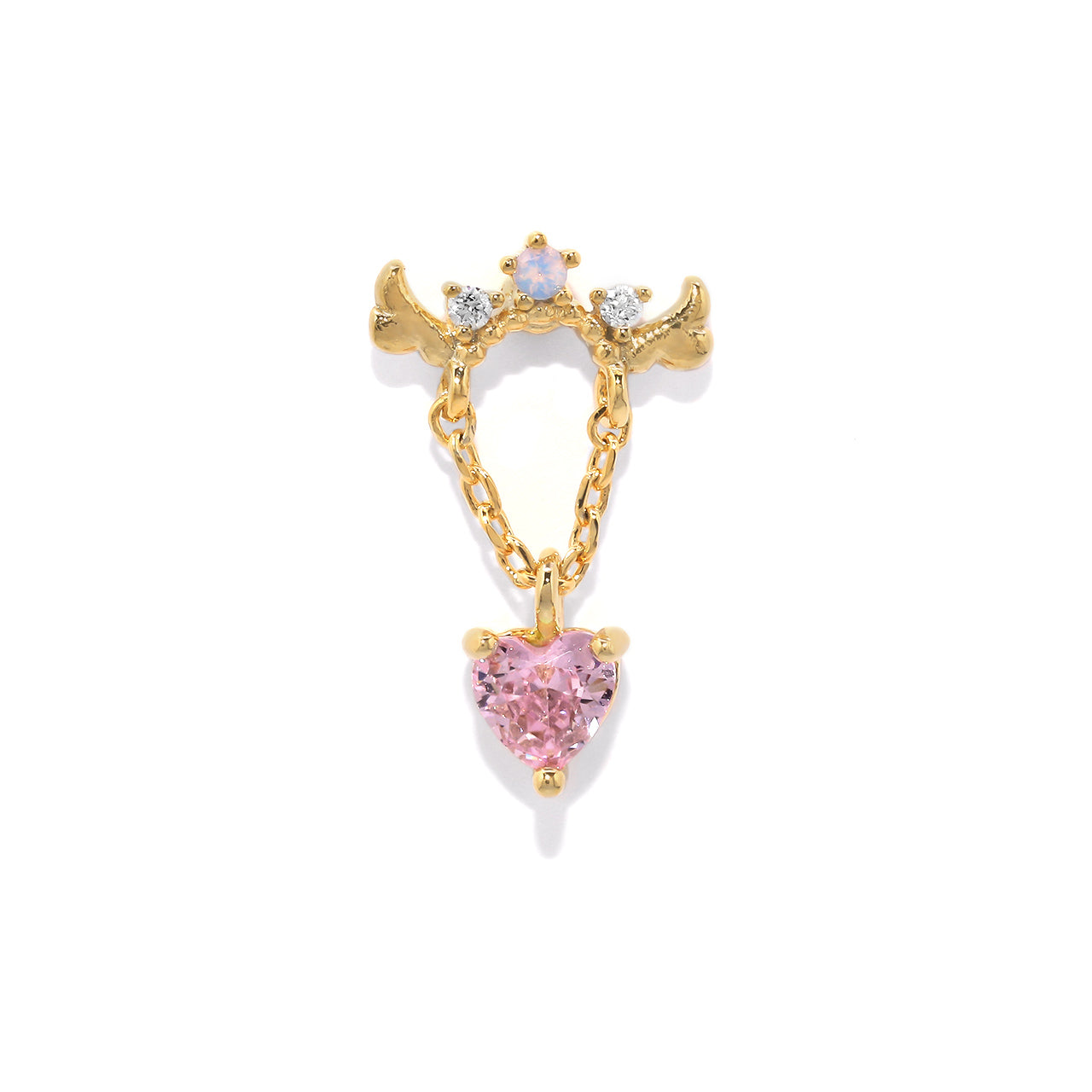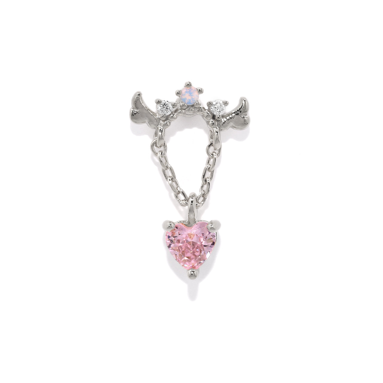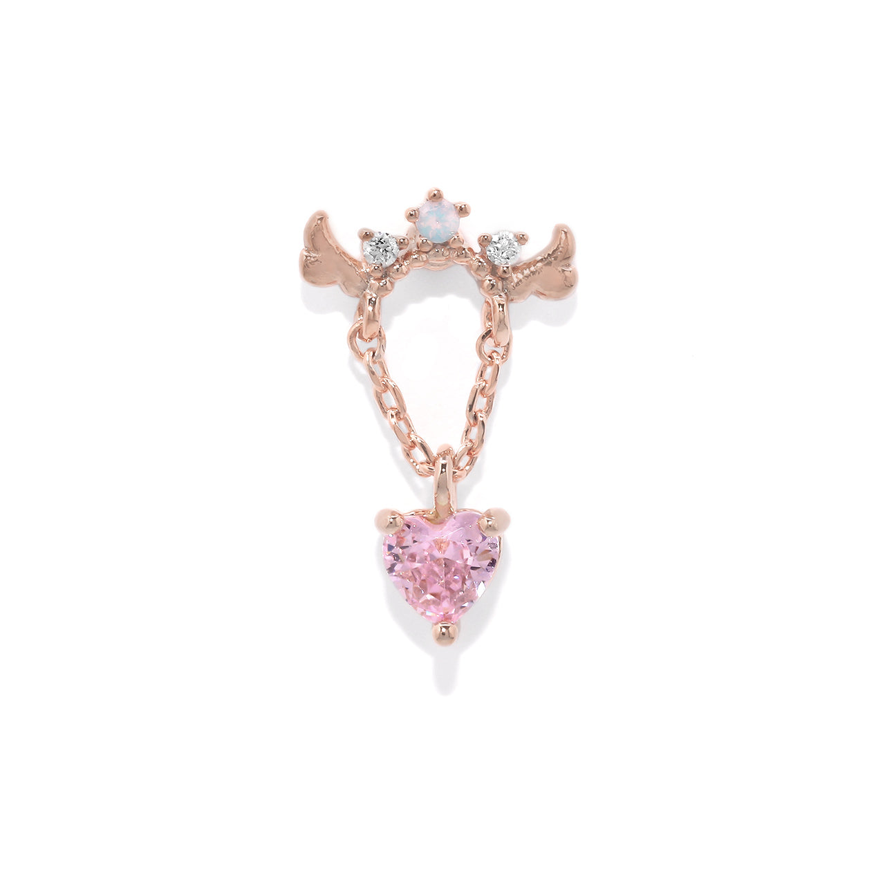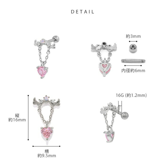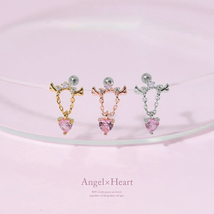 t9192-115 ボディピアス 金アレ対応 つけっぱなし 軟骨ピアス 16G ハート 金属アレルギー対応 サージカルステンレス かわいい ピアス レディース 天使の羽 揺れる チェーン ゆらゆら ピンク ジルコニア デート お出かけ デイリー 片耳用