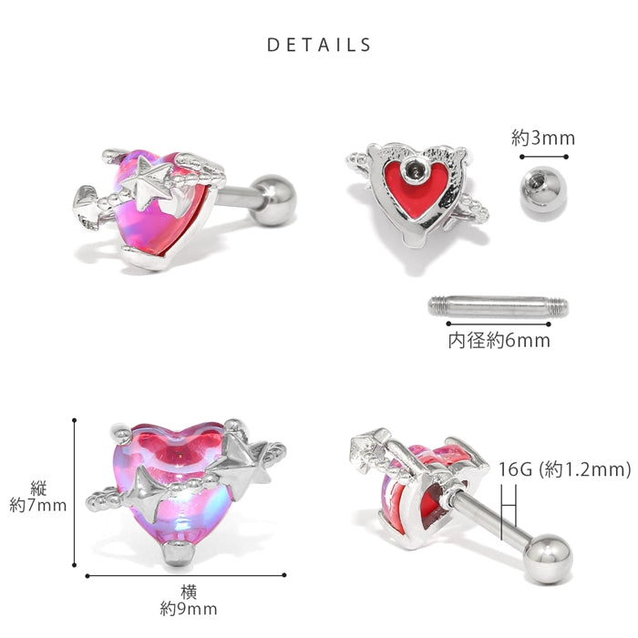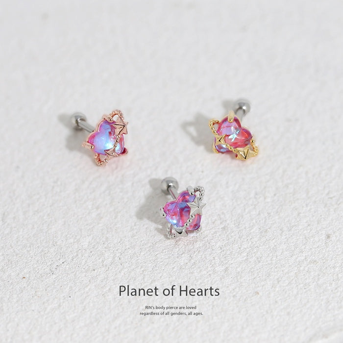 t9192-118 軟骨ピアス 16G ボディピアス ハート 惑星 ジュエル キラキラ ストレートバーベル サージカルステンレス 片耳用