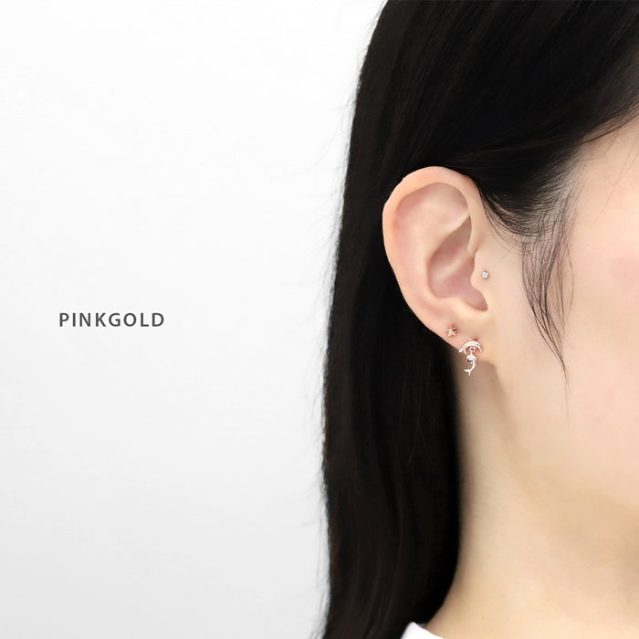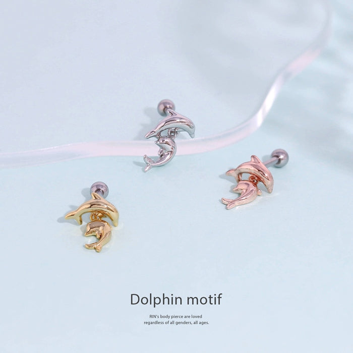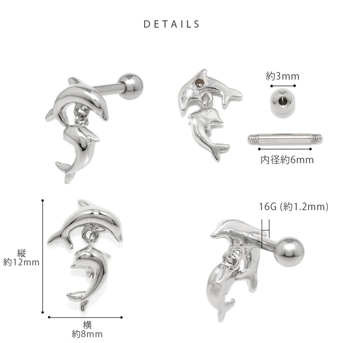 t9192-119 軟骨ピアス 16G ボディピアス イルカ 生き物 アニマル かわいい ストレートバーベル サージカルステンレス 片耳用