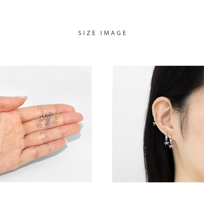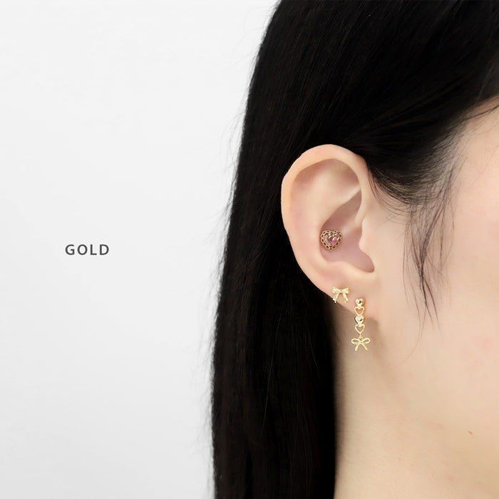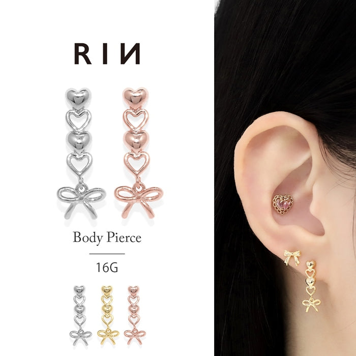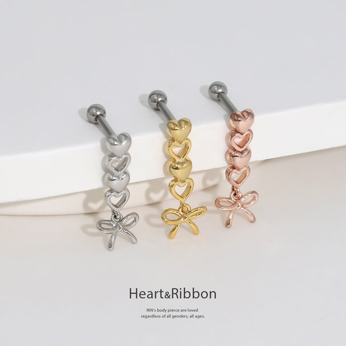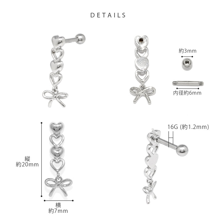 t9192-120 軟骨ピアス 16G ボディピアス リボン ハート かわいい ストレートバーベル サージカルステンレス 片耳用