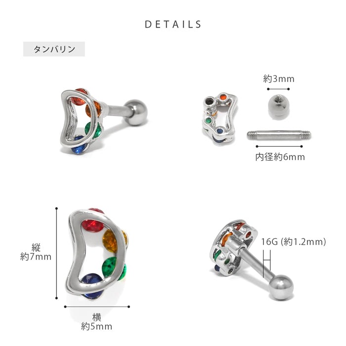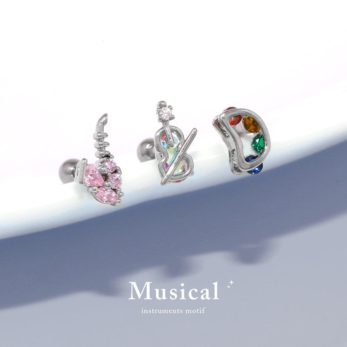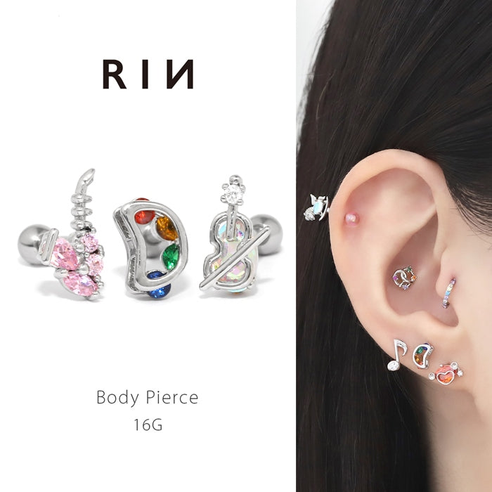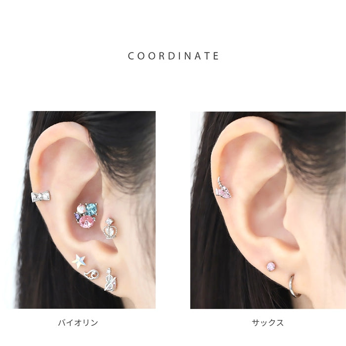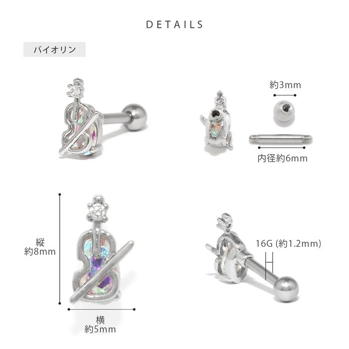 t9192-121 軟骨ピアス 16G ボディピアス 楽器 音楽 バイオリン サックス タンバリン ジュエル ストレートバーベル ピアス サージカルステンレス 片耳用
