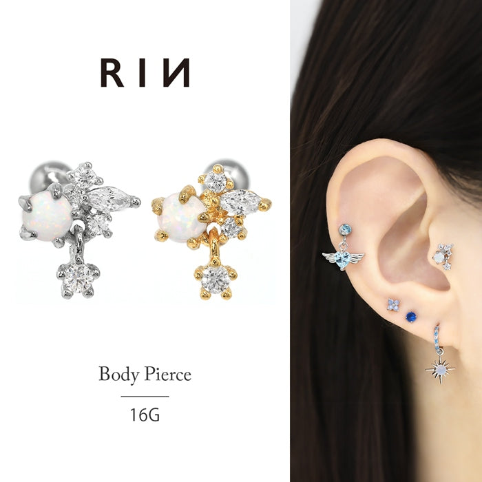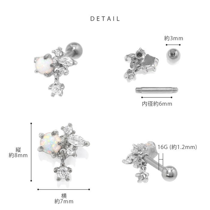 t9192-56 軟骨ピアス 16G ボディピアス かわいい キャッチ チャーム サージカルステンレス 金属アレルギー対応 ダイヤ ジュエル パール オパール キラキラ おしゃれ ファーストピアス セカンドピアス メンズ 軟骨 ピアス ボディーピアス