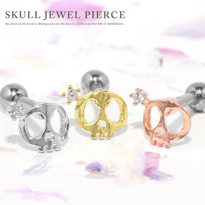 16G スカル 骸骨 ドクロ ジュエル ストレートバーベル 片耳用 軟骨1239 t9192-62