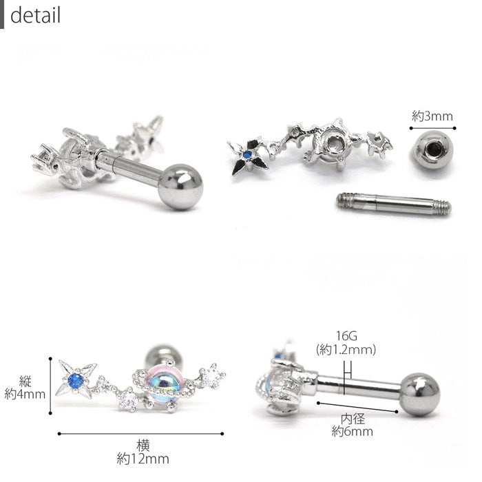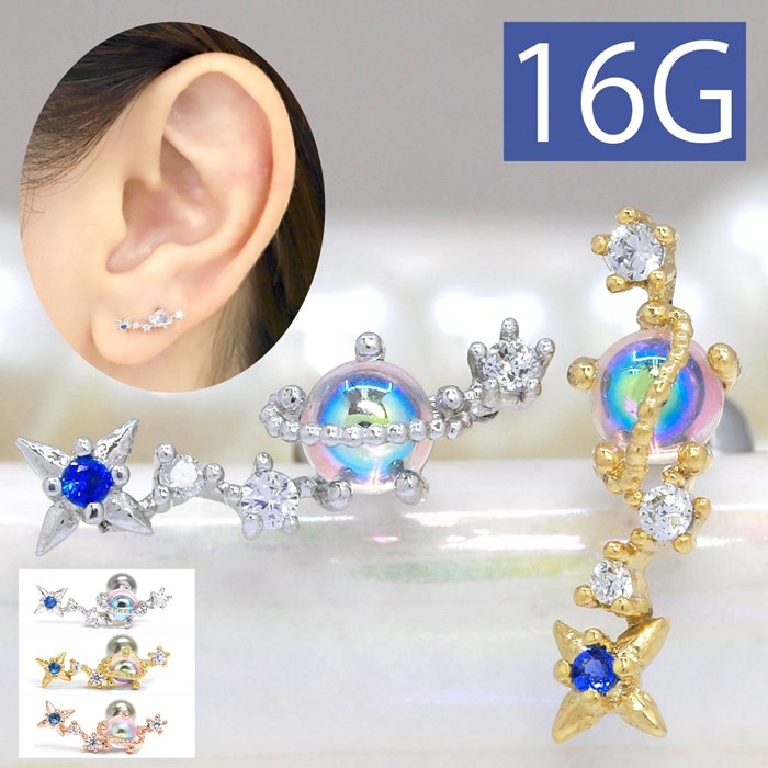 【楽天SOY5年連続受賞】ボディピアス 軟骨ピアス 惑星 星 スター ジュエル 16G シルバー ゴールド ピンクゴールド 金属アレルギー対応 サージカルステンレス 流れ星 かわいい レディース 片耳用