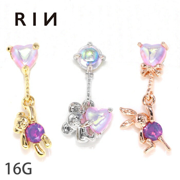 16G ハート くま コアラ ウサギ 風船 ストレートバーベル 片耳用 軟骨チャーム付0204 t9192-70