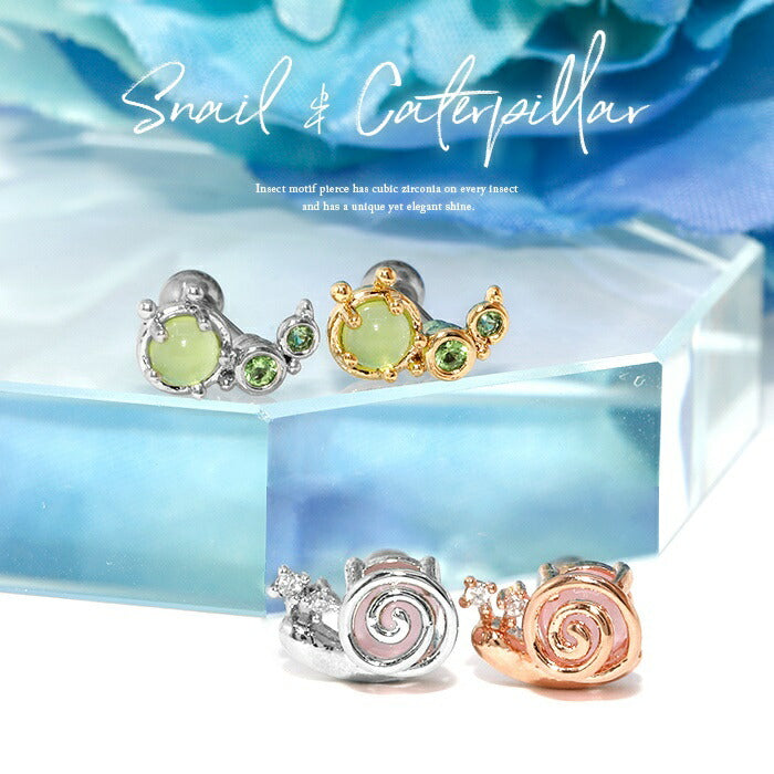 t9192-86 ボディピアス 16G 軟骨ピアス サージカルステンレス 金属アレルギー対応 カタツムリ イモムシ テントウムシ ミツバチ シルバー ゴールド ピンクゴールド ジュエル ストレートバーベル レディース ボディピ なんこつぴあす Pierce アクセサリー 片耳用
