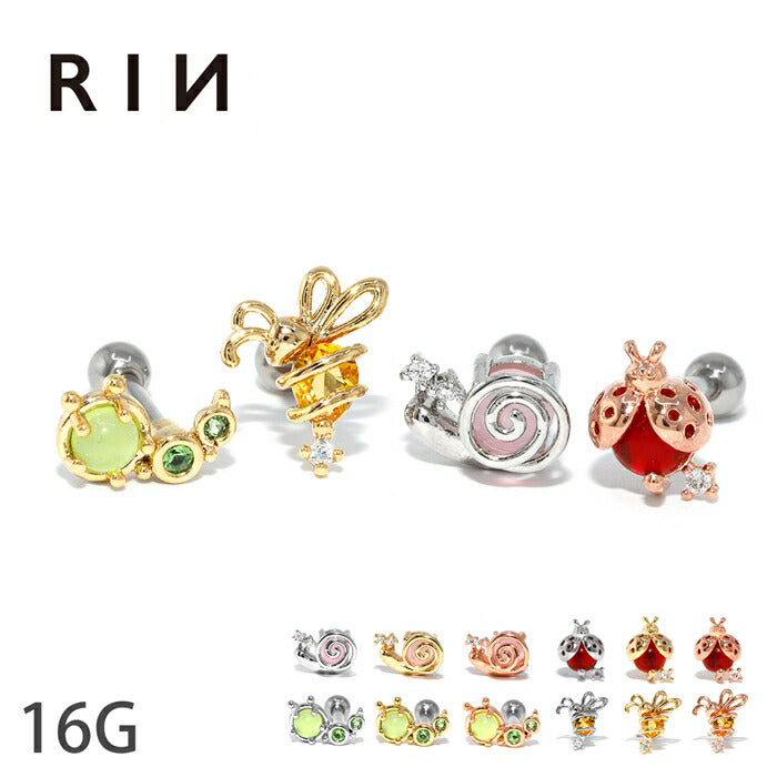 16G 軟骨ピアス 昆虫 いきもの ジュエル テントウムシ ミツバチ カタツムリ イモムシ ストレートバーベル 片耳用 軟骨1315 t9192-86