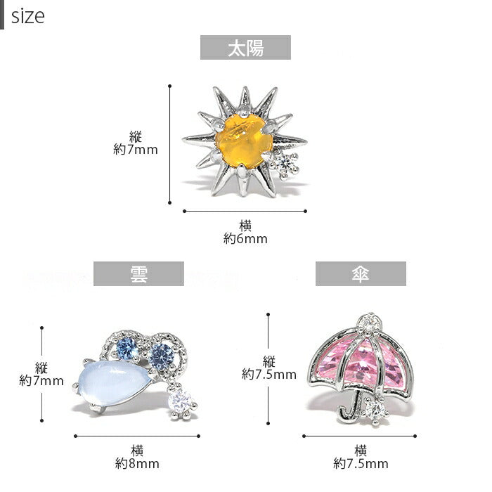 16G ピアス ジュエル 天気 太陽 雲 傘 ストレートバーベル 軟骨1327 t9192-90