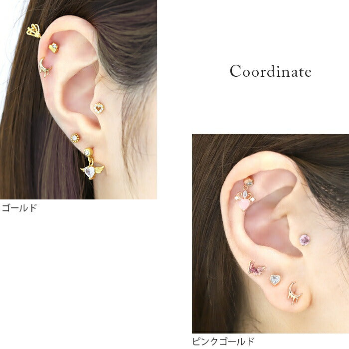 t9192-91 ボディピアス 軟骨ピアス 16G 月 ムーン ピアス 金属アレルギー サージカルステンレス ストレートバーベル セカンドピアス シルバー ゴールド ピンクゴールド レディース シンプル ステンレスピアス つけっぱなしピアス ヘリックス 軟骨用 片耳用