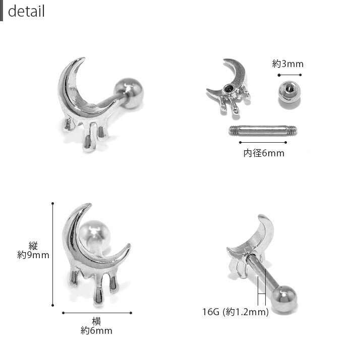 16G 月 メルティ ムーン 溶ける ストレートバーベル 軟骨1343 t9192-91
