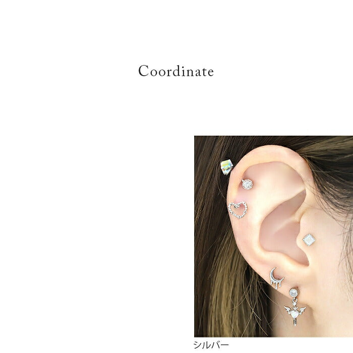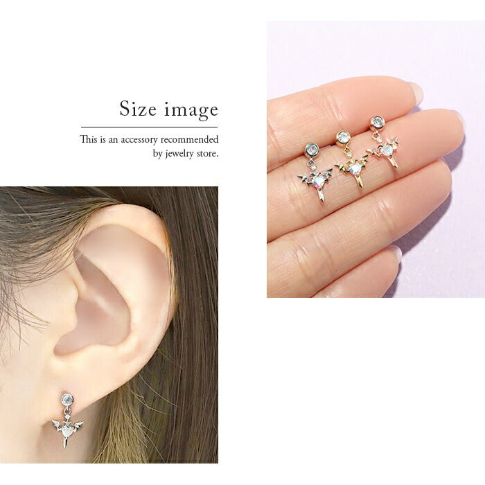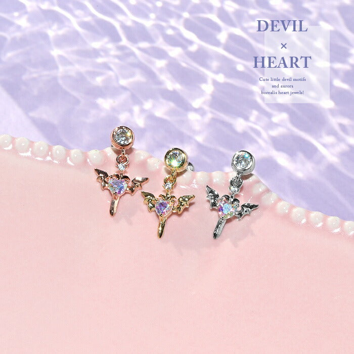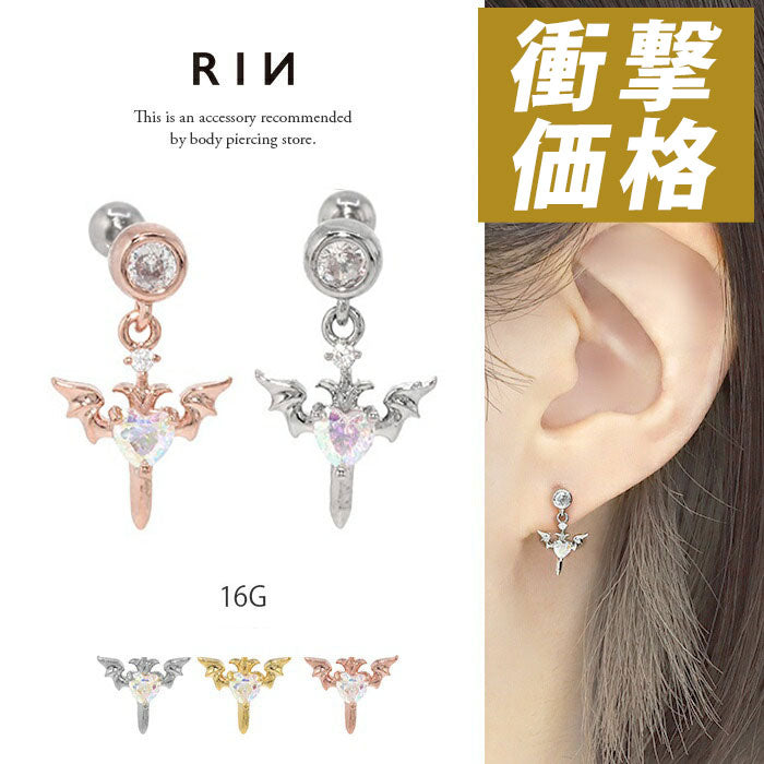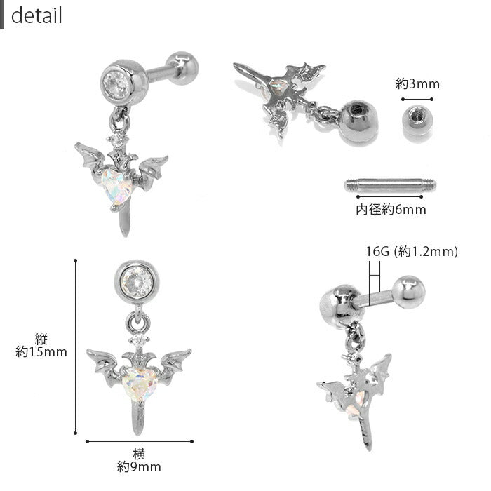 t9192-93 ボディピアス 軟骨ピアス チャーム 16G デビル ハート 羽 ピアス 金属アレルギー対応 サージカルステンレス ストレートバーベル セカンドピアス ステンレス シルバー ゴールド ピンクゴールド レディース ジュエル キラキラ キュービックジルコニア 揺れる 耳 片耳用