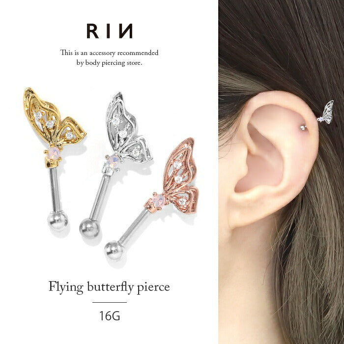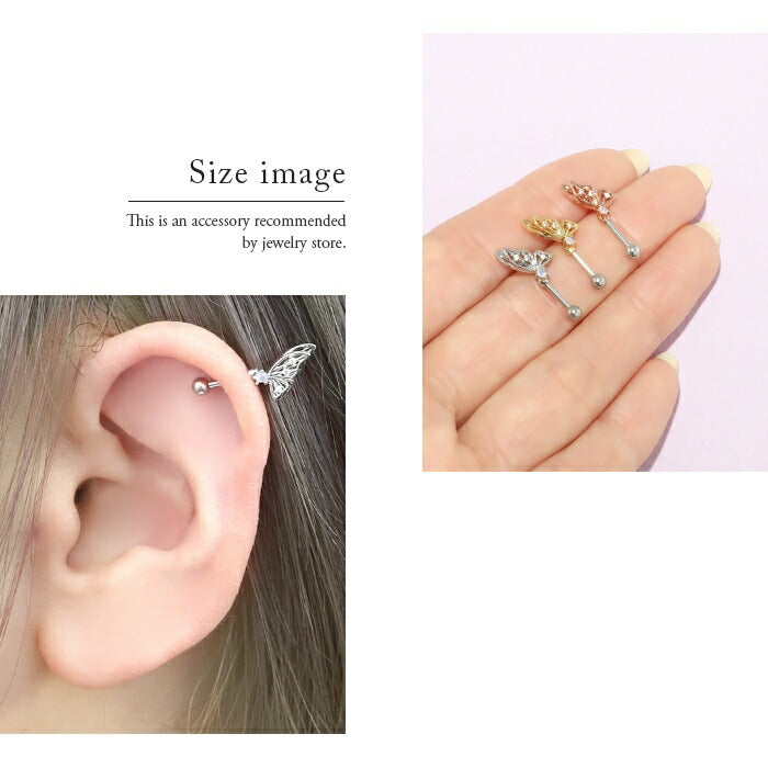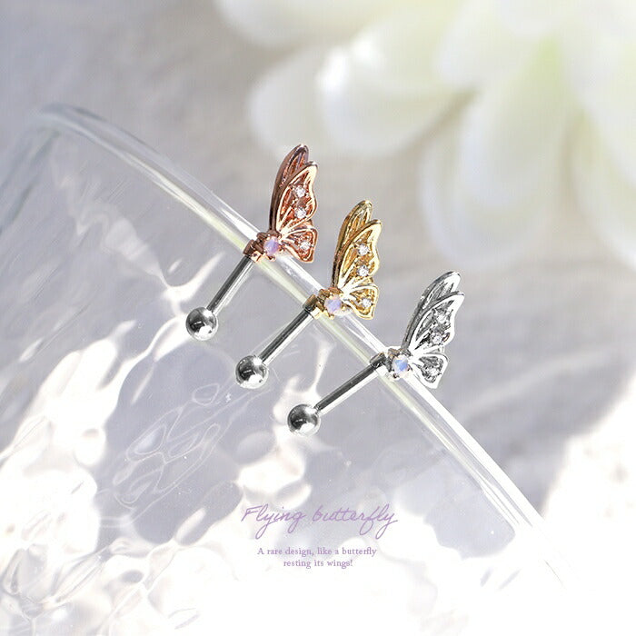 ★t9192-95 ボディピアス 軟骨ピアス 16G 蝶 バタフライ ピアス 金属アレルギー サージカルステンレス セカンドピアス ステンレス つけっぱなし シルバー ゴールド ピンクゴールド レディース ストレートバーベル シンプル キュービックジルコニア アンテナ ヘリックス 耳 片耳用