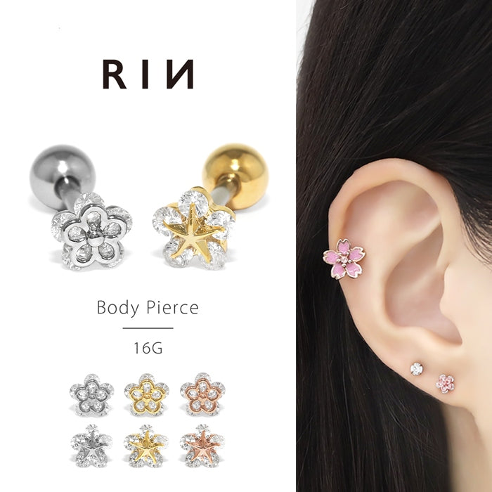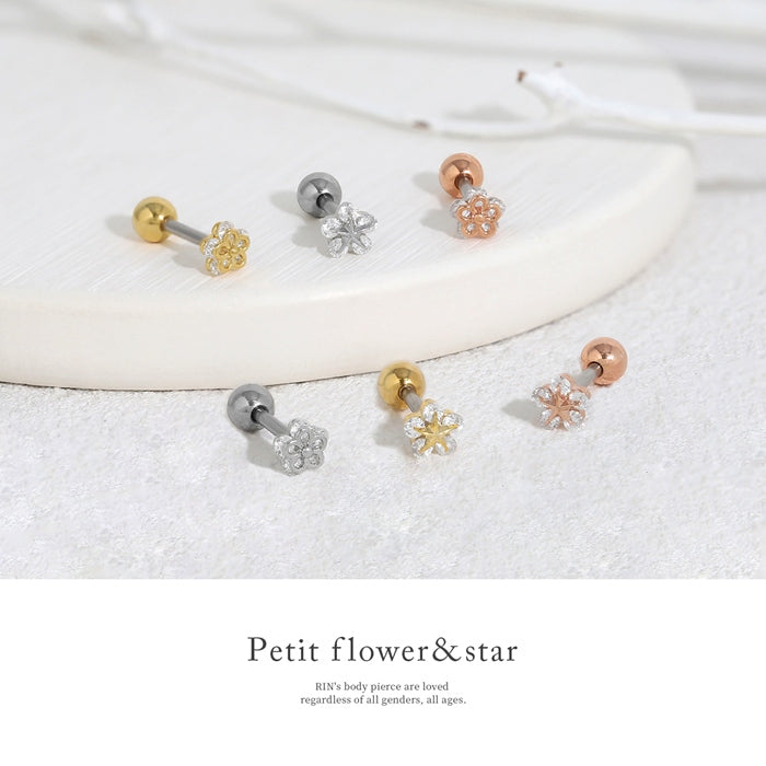★ t9312-001 軟骨ピアス 16G ボディピアス 花 星 フラワー スター ジュエル ジルコニア 小さめ プチ ストレートバーベル ピアス サージカルステンレス 片耳用