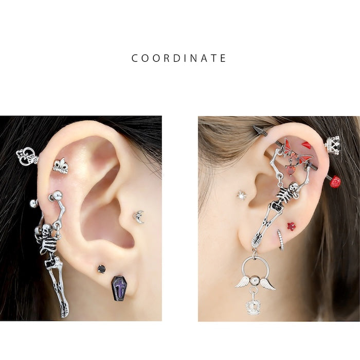 t9312-019 スカル 骸骨 チャーム パーツ 16G 18G ボディピアス 軟骨ピアス カスタマイズ 片耳用