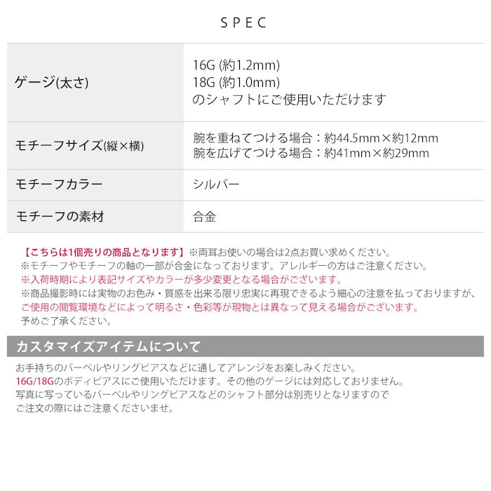 | モチーフサイズ(縦×横) | 全長 :(最小~最大)約41mm~約44.5mm×約12mm約29mm |
