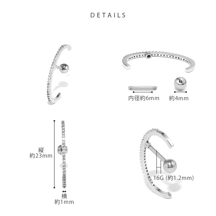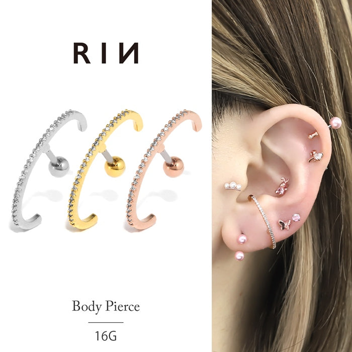t9312-022 軟骨ピアス 16G ボディピアス イヤーカフ風 ジュエル ジルコニア ハーフフープ ストレートバーベル ピアス サージカルステンレス 片耳用