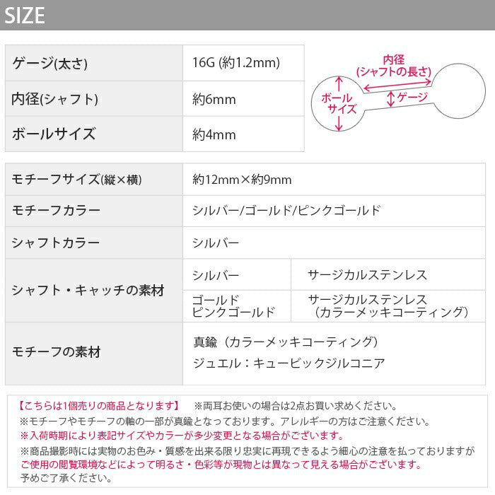 ※こちらの商品の一部カラーは、カラーのメッキコーティングを施しています。体質によって着けたままにされますと、メッキコーティングが剥がれる可能性がございます。