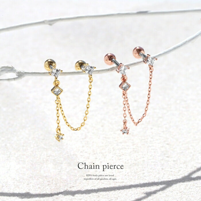 ボディピアス 16G チェーンピアス アレンジ カスタム ストレートバーベル キュービックジルコニア 軟骨チャーム付0231 t9312-33