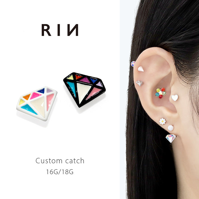 t951-0009-c キャッチ 16G 18G ポップ ダイヤモンドシェイプ カラフル ホワイト ブラック アレンジ パーツ カスタマイズ ピアス ピアスパーツ 片耳用