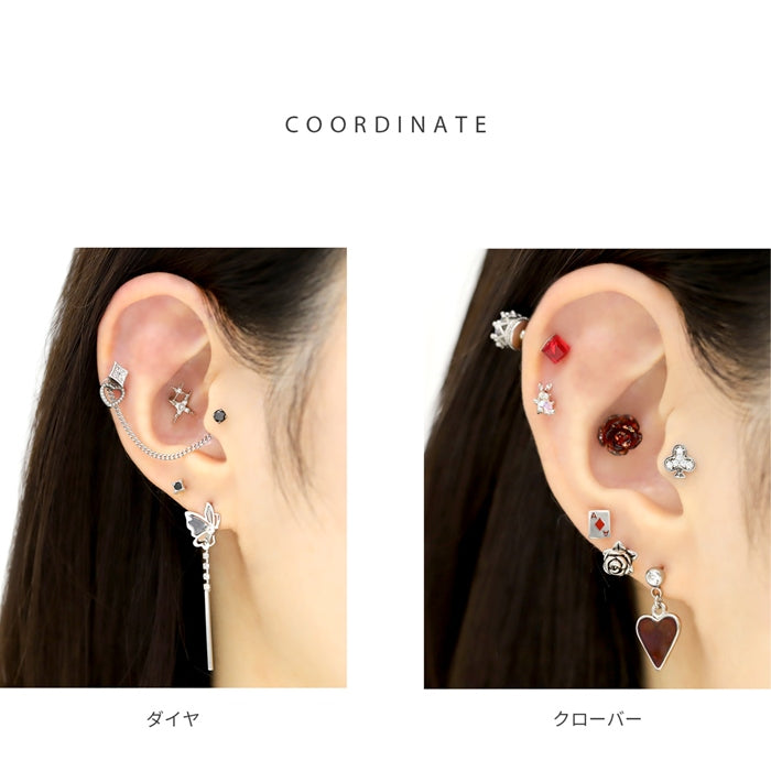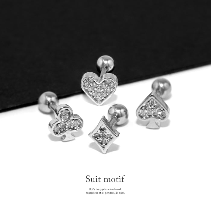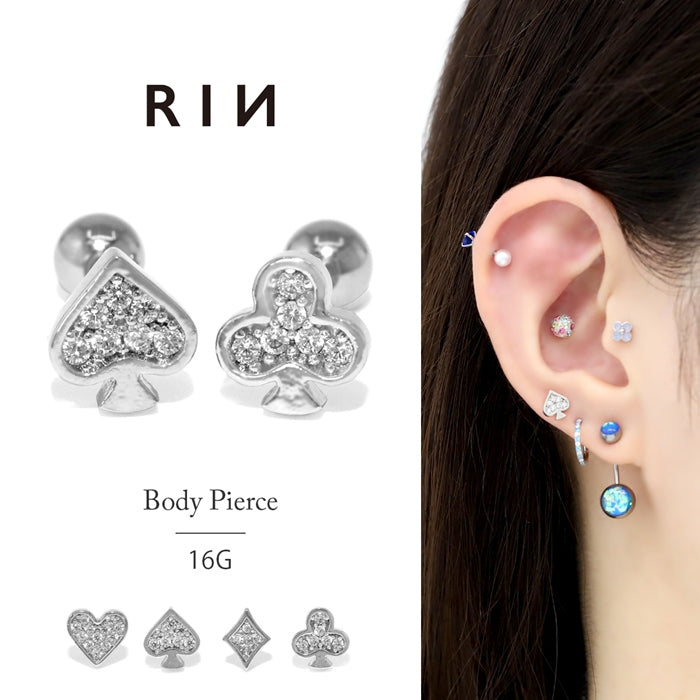 t951-0016 ボディピアス 16G 軟骨 ストレートバーベル トランプ スペード ハート クローバー ダイヤ 片耳用 金属アレルギー対応