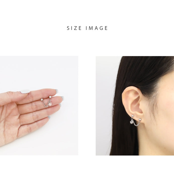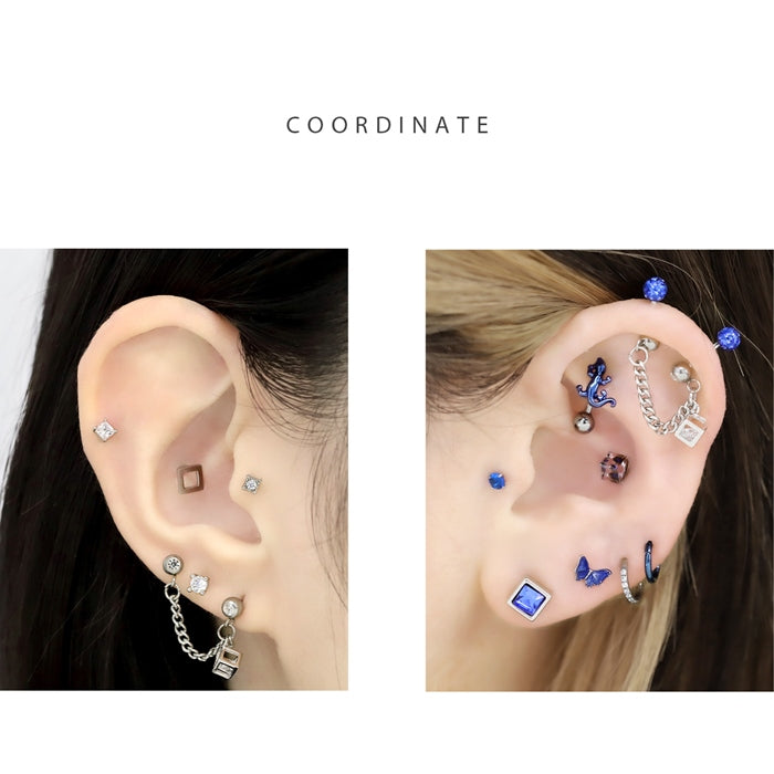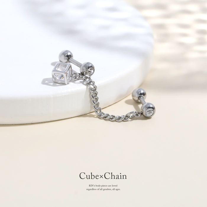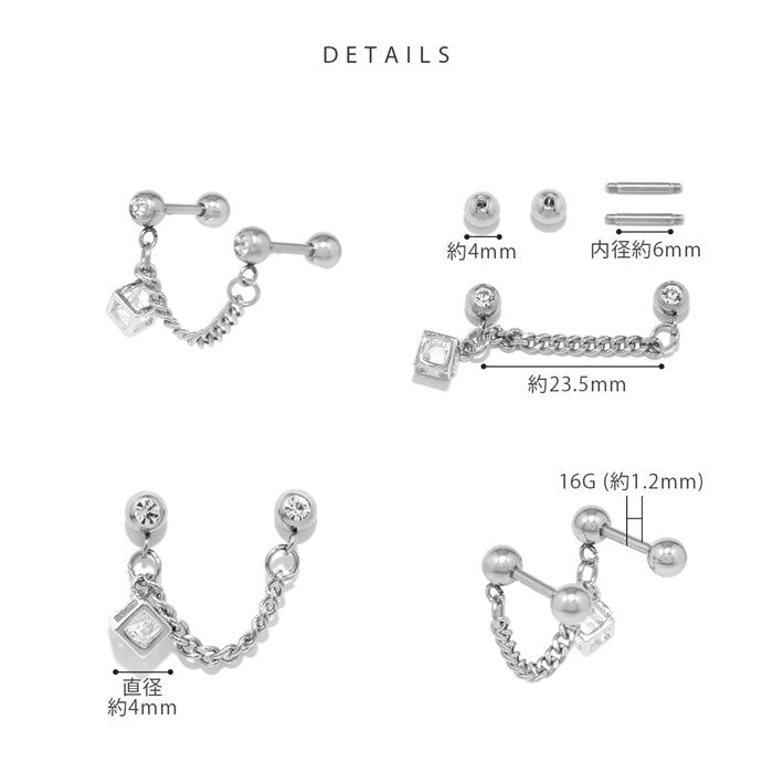 t951-0033 軟骨ピアス 16G ボディピアス ジュエル in キューブ チェーン Wバーベル ストレートバーベル ピアス サージカルステンレス 片耳用
