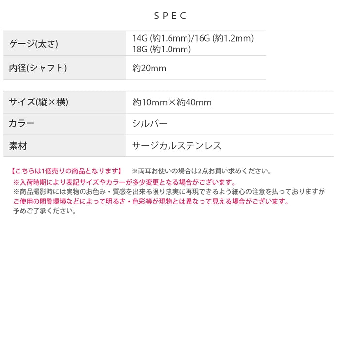 t951-0044 軟骨ピアス 14G 16G 18G ボディピアス 安全ピン ピアス サージカルステンレス 耳 軟骨用 シルバー かっこいい クール セカンドピアス インダストリアル