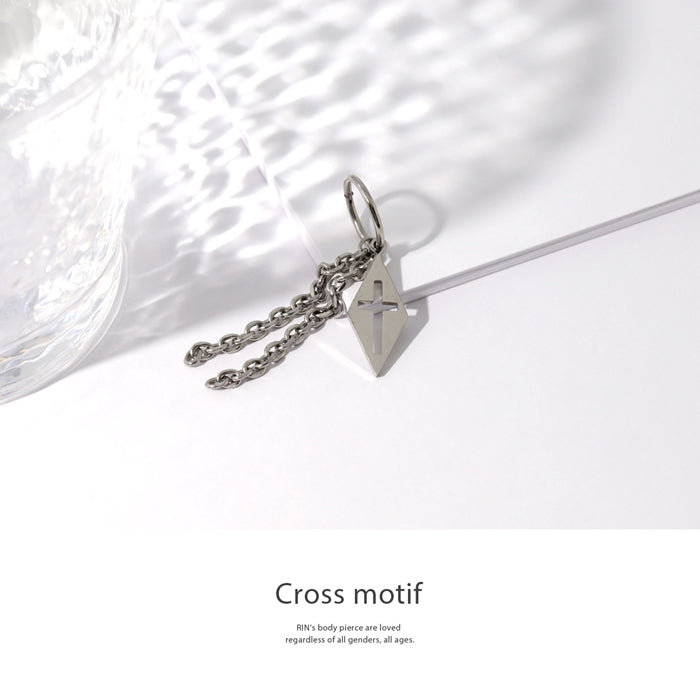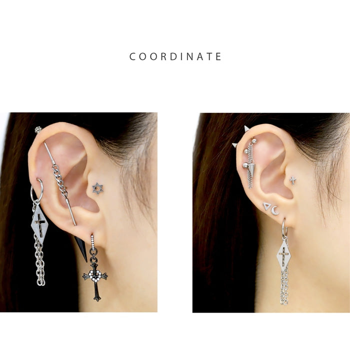 t951-0045 ボディピアス 16G チャーム リング 軟骨ピアス サージカルステンレス 金属アレルギー対応 十字架 クロス ワンタッチ フープ リングピアス チェーン スタイリッシュ キラキラ おしゃれ かわいい かっこいい メンズ 片耳用