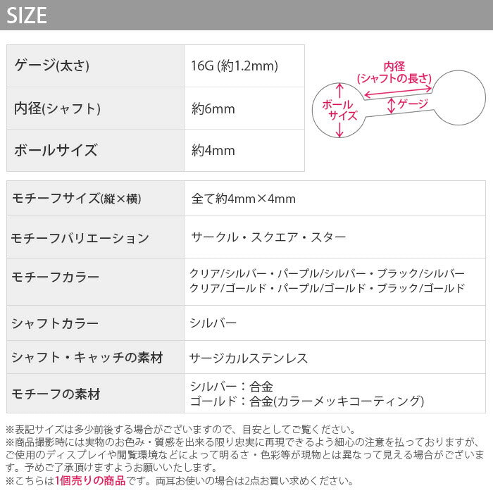 ★ t951-0046 軟骨ピアス 16G ボディピアス かわいい キャッチ チャーム サージカルステンレス 金属アレルギー対応 スター ジュエル プチ 星 サークル スクエア 丸 四角 おしゃれ キラキラ ストレートバーベル ファーストピアス セカンドピアス メンズ