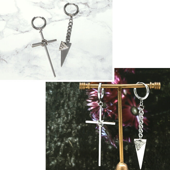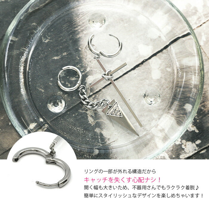 ステンレスピアス0071/ボディピアス 18G 軟骨ピアス ワンタッチ フープ リング クロス 十字架 三角 トライアングル チェーン ステンレスピアス0071「BP」/t951-56