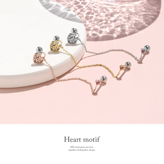 ボディピアス 16G 軟骨ピアス チェーン ハート 鍵 カギ キー ジュエル 軟骨チャーム付0198 t951-58