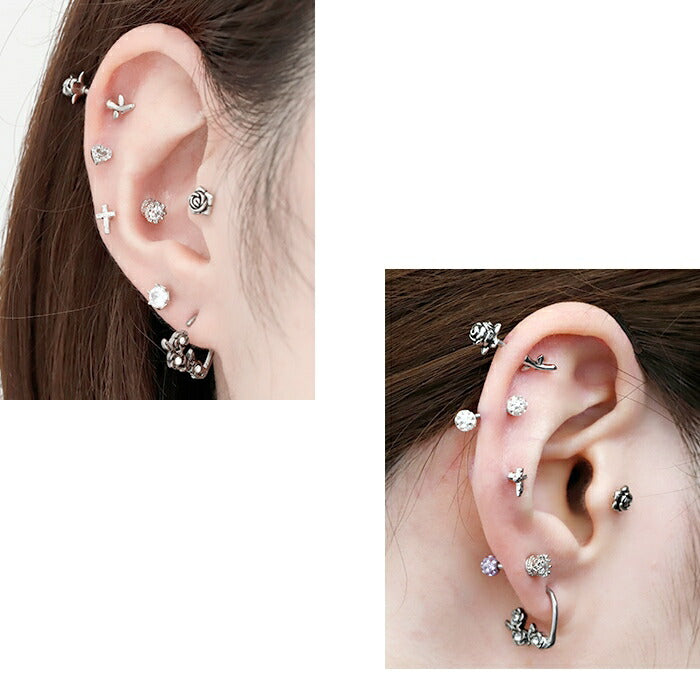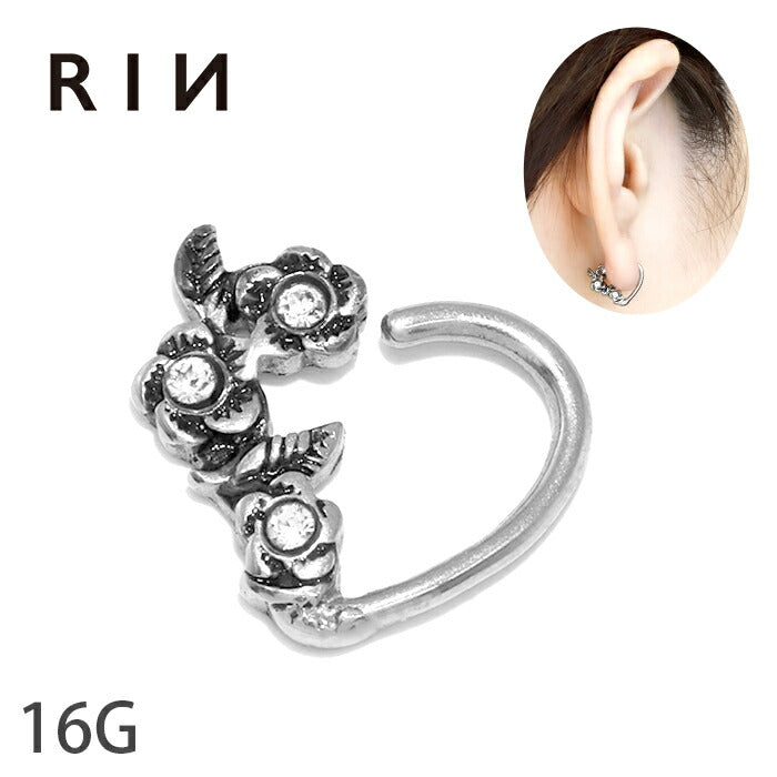 16G 軟骨ピアス ハート 花 ジュエル シームレスリング 片耳用 ステンレスピアス0105 ステンレスピアス0105 t951-63
