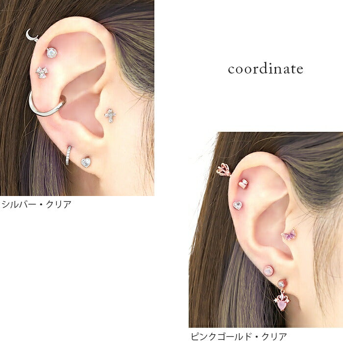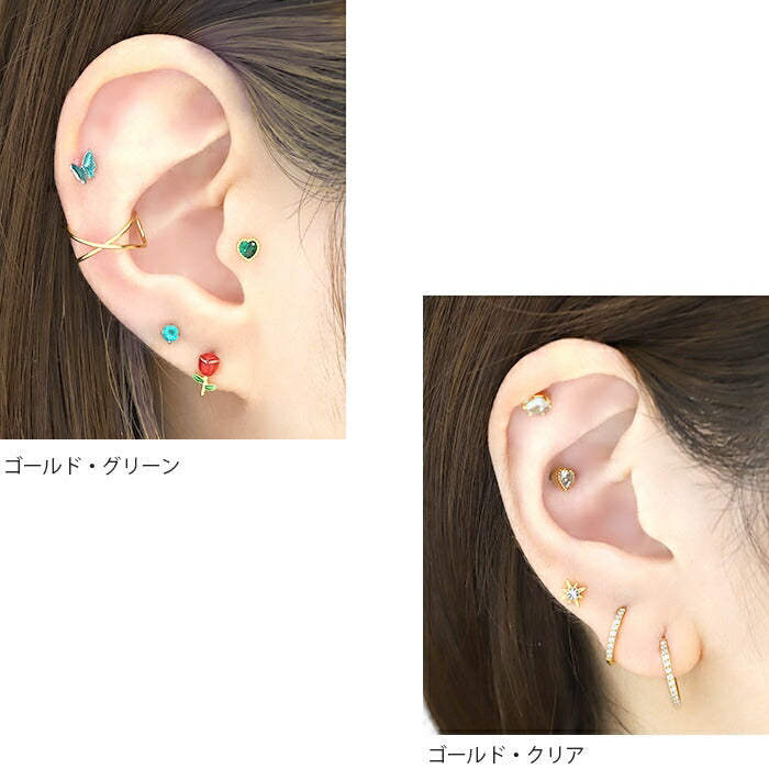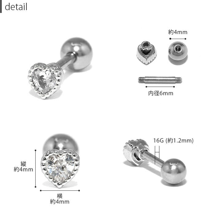★t951-65 ボディピアス 軟骨ピアス 16G ハート ピアス 金属アレルギー サージカルステンレス ストレートバーベル シルバー ゴールド ピンクゴールド レディース シンプル ジュエル キュービックジルコニア ステンレスピアス セカンドピアス キラキラ ヘリックス 小さめ 軟骨用 片耳用