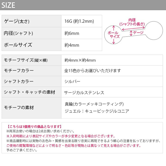 ※こちらの商品の一部カラーは、カラーのメッキコーティングを施しています。体質によって着けたままにされますと、メッキコーティングが剥がれる可能性がございます。