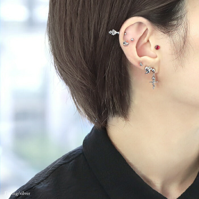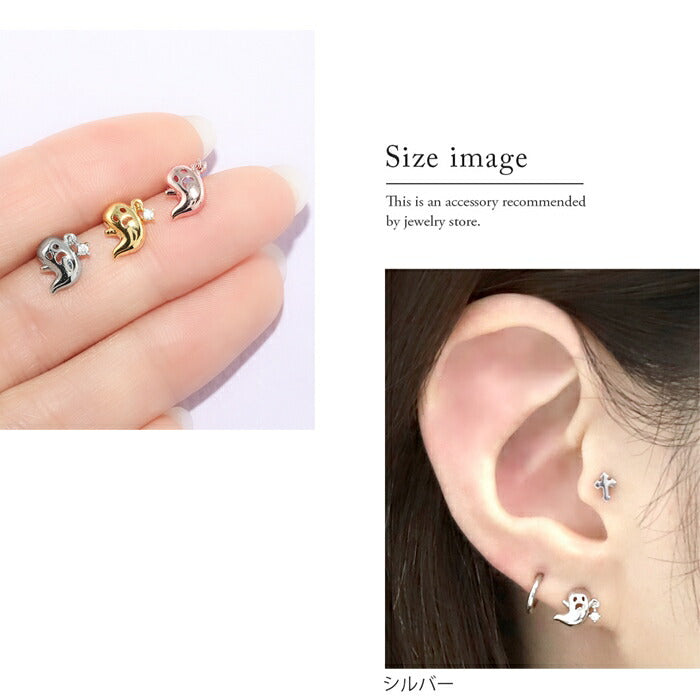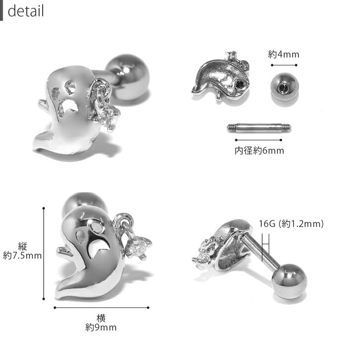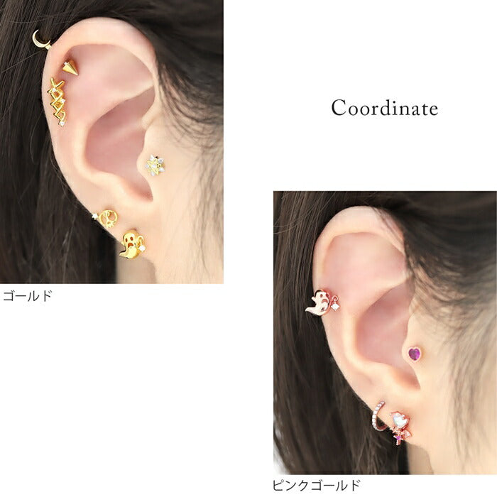 t951-67 ボディピアス 軟骨ピアス 16G ピアス 金属アレルギー サージカルステンレス ゴースト おばけ シルバー ゴールド ピンクゴールド レディース ステンレス セカンドピアス ストレートバーベル キラキラ キュービックジルコニア 耳 耳たぶ 軟骨用 片耳用